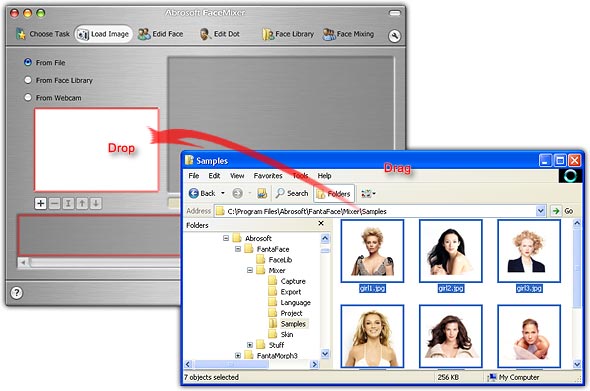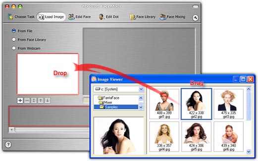 When choosing from many source files, finding a particular source image may be difficult. In this case, press the F9 key or choose the Tools/Image Viewer menu, and the image viewer will appear. Adjust its window size and position as suited for viewing. Use this simple, fast tool with thumbnail previews to explorer all supported image resources on your disks. Click on the desired file and drag it to the source file area in the main interface. Note, now you can drag only one file at a time from the image viewer.
