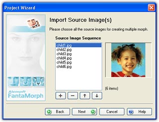 Once the image sequence is prepared, click "Next" button, the program will create a multiple morph by following the image sequence through. Then, edit key dots for each image, or add movie effects if needed. The resulting movie is below.