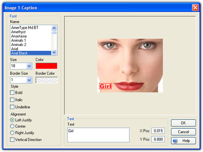 Now you can add text caption on source images or the whole morph movie without using any additional software. The caption added on a source image will be morphed along with it, but the movie caption will always overlay on the whole movie.