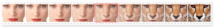 Leopard's feature will appear slowly when using a concave curve, see below. Look at the middle frame of the morph, it still has 75% of girl's feature but has only 25% of leopard's feature.
