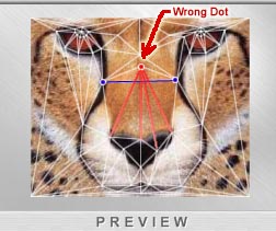 On the preview window, we saw a few (red) lines cross the (blue) line. This is just that we called "mesh tangling". For creating a right morph, never let a line across the others. Note: the red and blue lines are for illustration purposes only and won't be colored in FantaMorph.