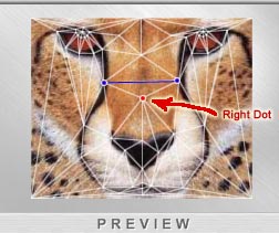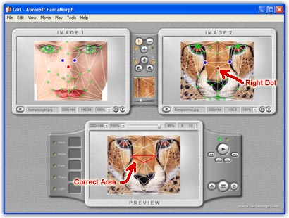 Also, any mesh tangling can be obviously found than ever before, this will help you place key dots accurately. For example, there is an annoying "overlap" (an area where the two images don't come together smoothly and have a white line that separates the two) within the morph below and should be removed. Note, beginning with version 3.5.2, you should choose the View/Overlap menu to highlight the overlap area if exists, by default, the program won't highlight the overlap area for better image quality.