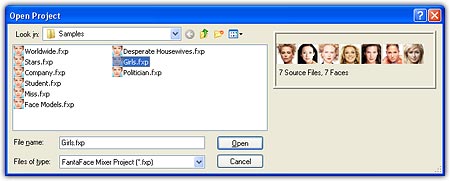 5. If choose Open Sample Project, all the sample projects stored in the sample folder (by default, it is C:\Program Files\Abrosoft\FantaFace\Mixer3\Samples) will be listed.