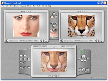 The most important element in producing morphs is to place key dots on both source images in order to define how the morph process will operate. It's good to place dots on the major elements of a morphing image (for example, when morphing a face image, the major elements include eyes, nose, mouth, etc.). In this lesson, we'll start by placing dots around the eyes of both images.